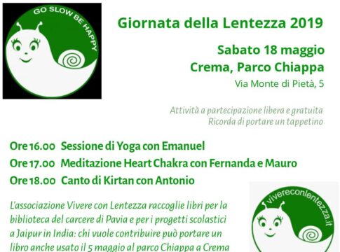Celebriamo insieme a Mauro, Antonio, Emanuel e Fernanda la Giornata della Lentezza sabato 18 maggio 2019 dalle ore 16,00 al Parco Chiappa con yoga, meditazione e canti.