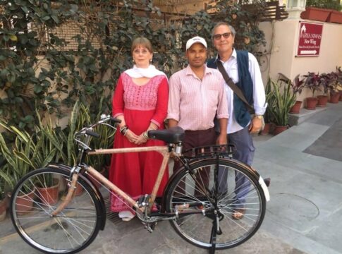 Nella foto insieme ai volontari Ella e Bruno c’è Dhan, il primo di una (speriamo) lunga serie di persone che ha ricevuto una bici in dono. In India dopo la casa, una delle cose più costose sono i trasporti, non sono solo lenti e insicuri, ma portano via una parte consistente del salario di un lavoratore povero. Vivere con Lentezza con l’aiuto di Parwal, ha pensato di avviare un progetto per facilitare una vita molto dura a qualcuno. La fiammante Atlas, con le gomme semi-riksciò, campanello (fondamentale da queste parti, veramente ci vorrebbe una sirena dei pompieri…), lucchetto e luci, il tutto per 3700 rupie, poco più di 50 euro è stata acquistata grazie alla donazione diretta di una sostenitrice italiana.