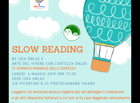 Ogni anno in occasione della Giornata della Lentezza Isea Onlus si attiva! Quest’anno per la tredicesima edizione organizza uno slow reading lunedì 6 maggio 2019 ore 17:00 sede ISEA Onlus – Via Picentino n. 25  84098 Pontecagnano Faiano (SA)